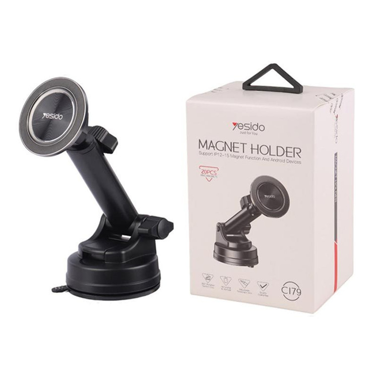 قابل اتصال به داشبورد و سایر سطوح صاف با وجود پایه مکنده تعبیه شده، همراه با ورقه آهنربایی جهت قرارگیری پشت قاب گوشی موبایل