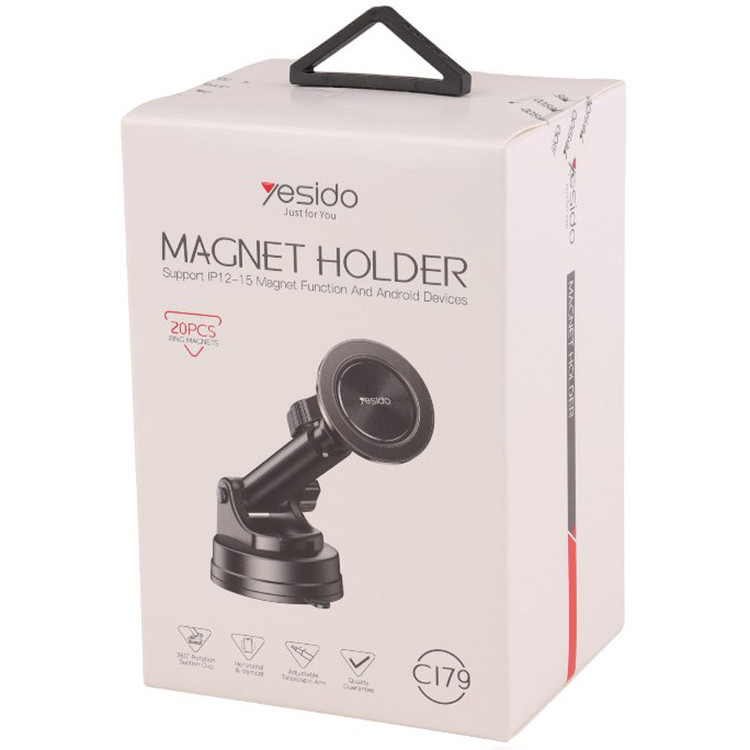 قابل اتصال به داشبورد و سایر سطوح صاف با وجود پایه مکنده تعبیه شده، همراه با ورقه آهنربایی جهت قرارگیری پشت قاب گوشی موبایل