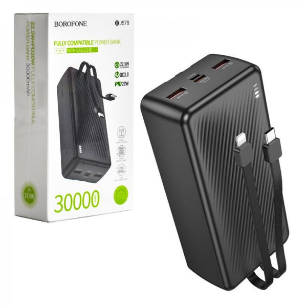 پاوربانک + دو کابل همراه بروفون (BOROFONE) مدل BJ57B ظرفیت 30000mAh