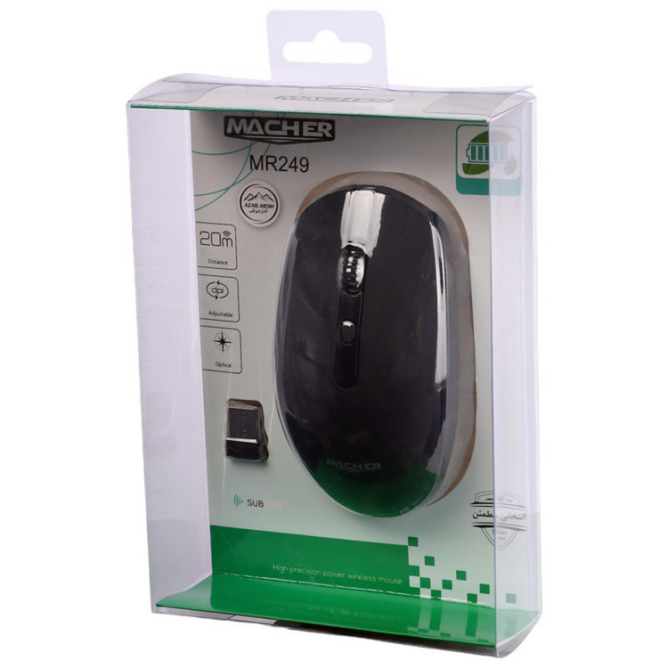 تامین انرژی از طریق 2 عدد باتری قلمی قابل تعویض و دانگل USB جهت اتصال وایرلس