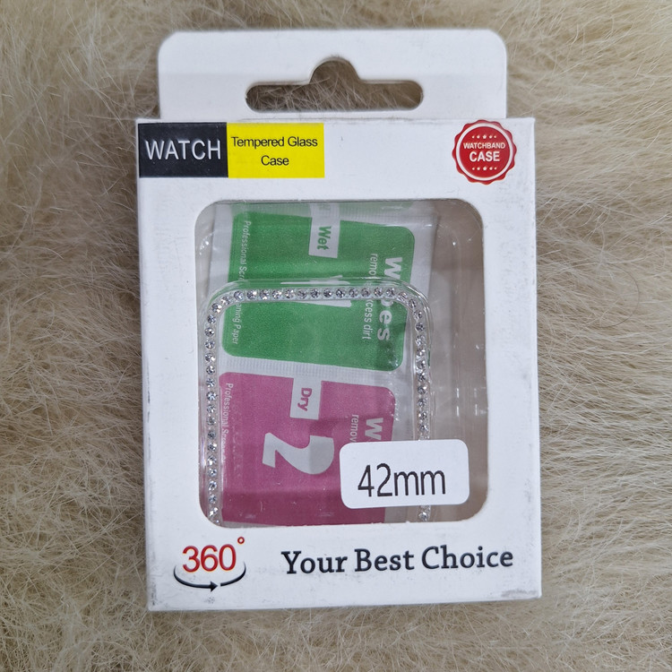 قاب نگین دار دور شفاف نقره ایی ساعت سایز 38