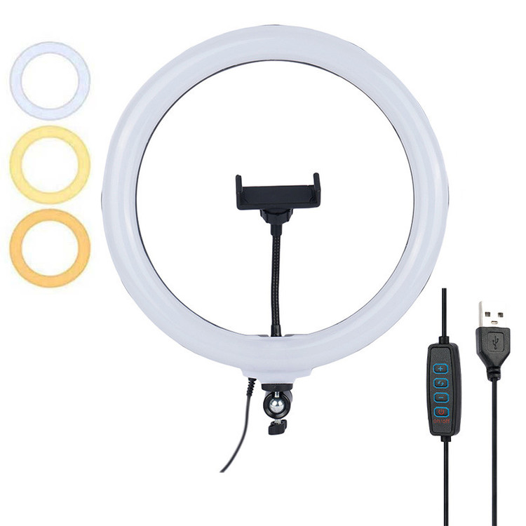 سایز حلقه 12 اینچ، قطر خارجی حدود 30 سانتی متر، اقلام همراه یک عدد پایه هولدر موبایل