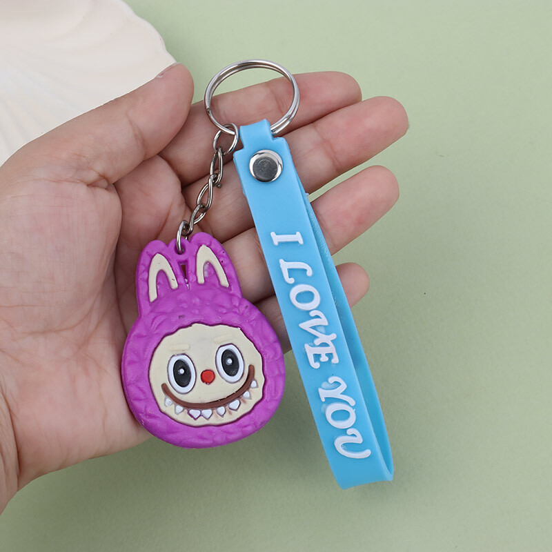 جاکلیدی سیلیکونی طرح لبوبو آینه دار + بند آویز