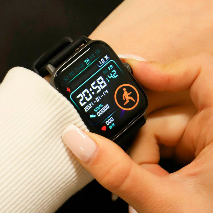 سایز صفحه نمایش 1.92 اینچ با پنل IPS لمسی و رنگی، طراحی شده در فرم مستطیلی، جنس بند از نوع سیلیکون و دارای قفل بند سگکی ساده